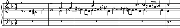 for orchestra — 2 oboes, 2 horns, timpani, 2 violins, viola, and bass.